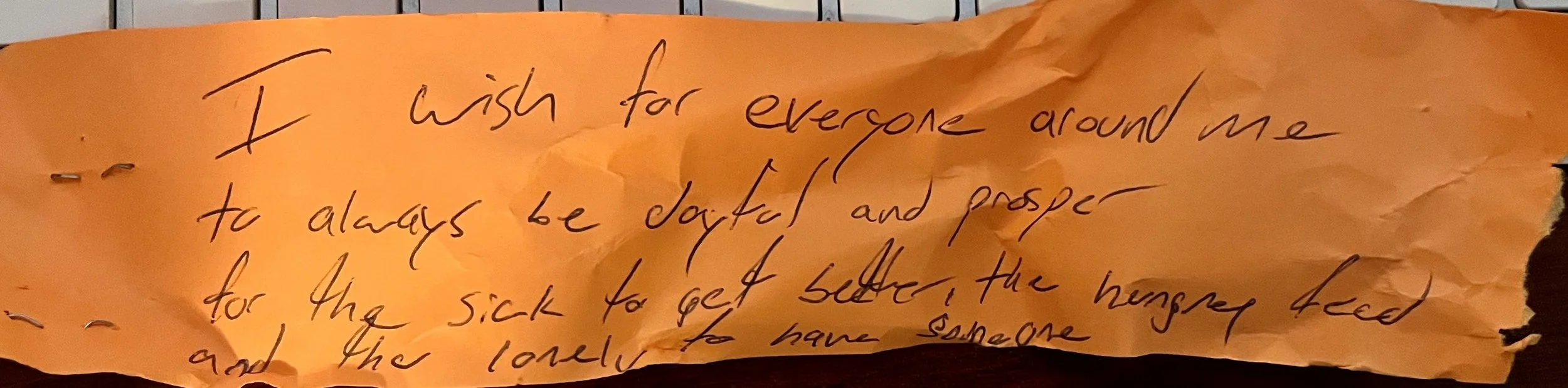 “I wish for everyone around me to always be joyful and prosper, for the sick to get better, the hungry fed, and the lonely to have someone”